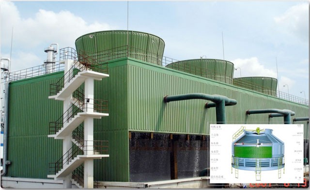 冷卻塔是利用水與空氣流動接觸后進行冷熱交換產生蒸汽,蒸汽揮發帶走熱量達到蒸發散熱、對流傳熱和輻射傳熱等原理來散去工業上或制冷空調中產生的余熱來降低水溫的蒸發散熱裝置,以保證系統的正常運行,裝置一般為桶狀,故名為冷卻塔。逆流式冷卻塔是水流在塔內垂直落下,氣流方向與水流方向相反的冷卻塔。